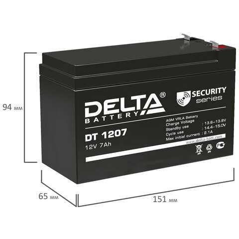 Аккумуляторная батарея для ИБП любых торговых марок, 12 В, 7 Ач, 151х65х95 мм, DELTA, DT 1207