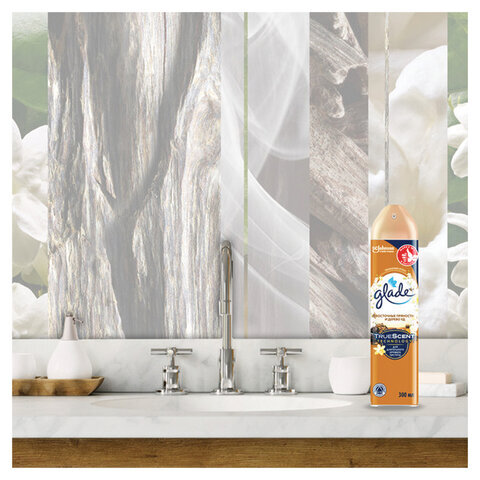 Нотки экзотических пряностей, прозрачный жасмин и удовое дерево идеально сочетаются в аромате освежителя GLADE.