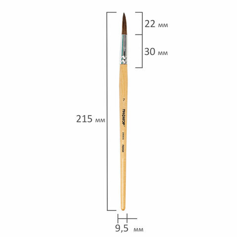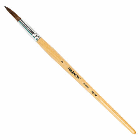 Кисть ПИФАГОР, ПОНИ, круглая, № 7, деревянная лакированная ручка, колпачок, пакет с подвесом, 200836