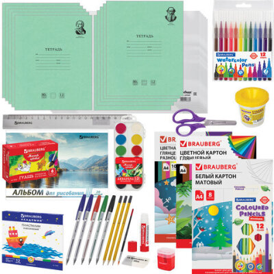 Набор канцелярских принадлежностей BRAUBERG "ПЕРВОКЛАССНИК" для выпускников детского сада и первоклассников в красочной упаковке. Скомплектован на основе рекомендаций учителей начальных классов.