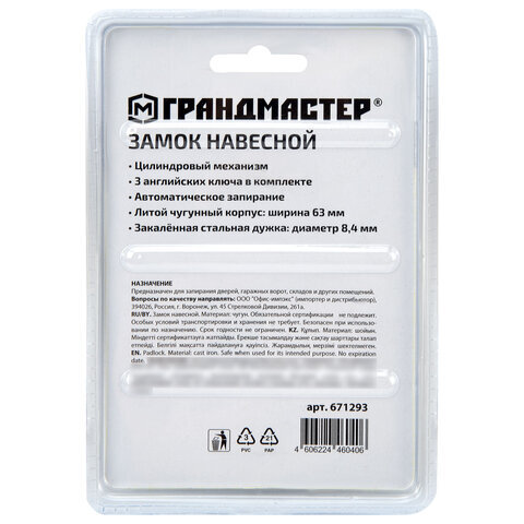 | Ширина замка | 63 мм |