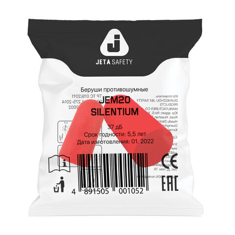 JETA SAFETY JEM20 – беруши из мягкого гипоаллергенного вспененного полиуретана. Принимают форму слухового канала. Акустическая эффективность – 37 дБ. Необходимы для защиты слуха при регулярном воздействии шумов свыше 85 дБ.
