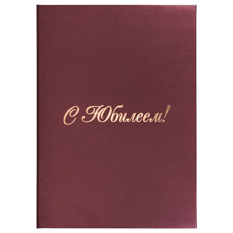 Папка адресная бумвинил "С ЮБИЛЕЕМ!", формат А4, бордовая, индивидуальная упаковка, STAFF "Basic", 129579