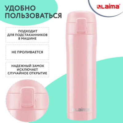 Термокружка 470 мл из нержавеющей стали SUS304, нежно-розовый бархат матовый, LAIMA, 608824