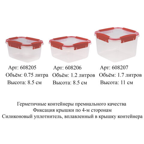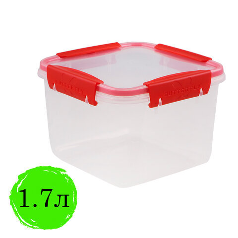 Контейнер с крышкой пищевой 1,7 л герметичный, BUTTERFLY, ланч бокс, 11х15,6х15,6 см, прозрачный, 4378559, 437855900