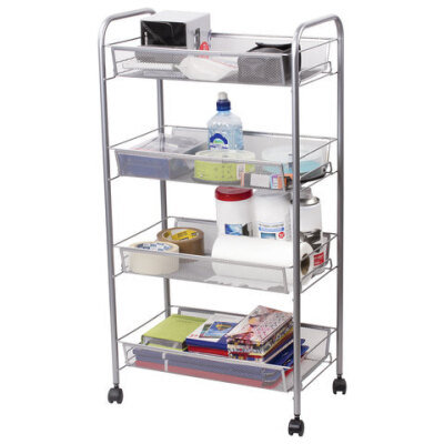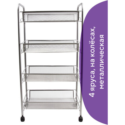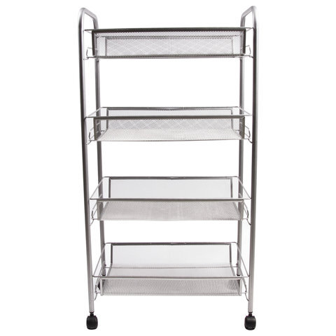 Этажерка (тележка) BRABIX офисно-бытовая 4 яруса, на колесах, металл, серебристая, 43,5х26х83,5 см, 603754