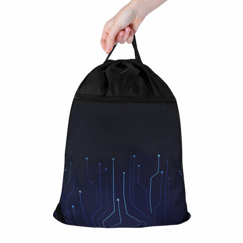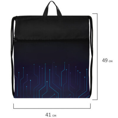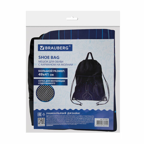 Мешок для обуви BRAUBERG БОЛЬШОЙ, с ручкой, карман на молнии, сетка для вентиляции, 49х41 см, "Electro", 271061