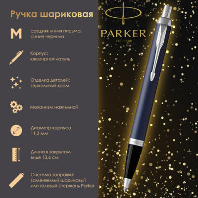 Ручка шариковая PARKER "IM Core Matte Blue CT", корпус темно-синий лак, хромированные детали, синяя, 1931668