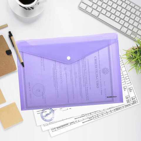 Папка-конверт с кнопкой ERICH KRAUSE "Diagonal Pastel" А4 из высококачественного непрозрачного пластика с текстурой поверхности "диагональ", на которой не видно отпечатков пальцев и мелких царапин.