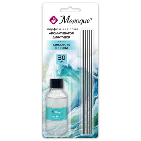 Ароматизатор аромадиффузор с палочками, освежитель 30 мл, МЕЛОДИЯ "Свежесть океана", 609790