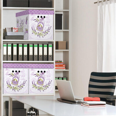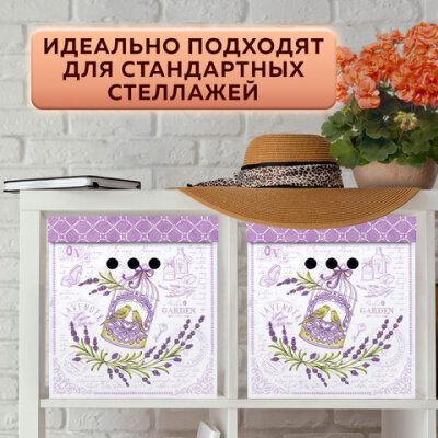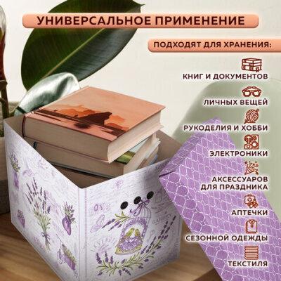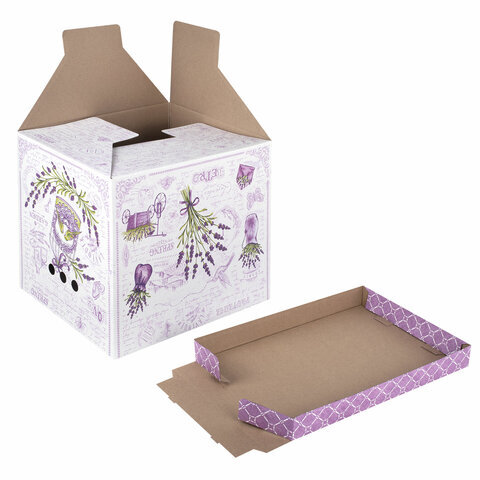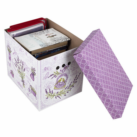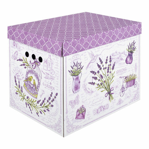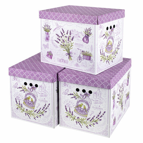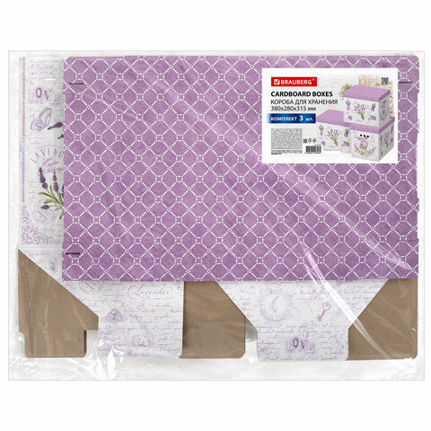 Короб для хранения из плотного микрогофрокартона 380х280х315 мм, КОМПЛЕКТ 3 шт., BRAUBERG HOME "Лаванда", 271821