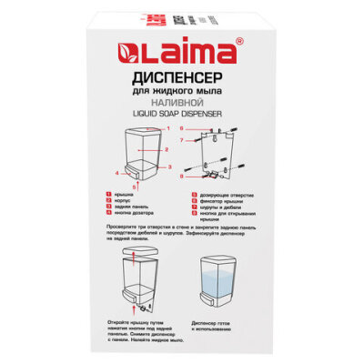 • Дозатор для жидкого мыла LAIMA подходит для использования в местах с любой проходимостью, таких как туалетная комната в ресторане, офисе, торговом центре, аэропорту, вокзале.