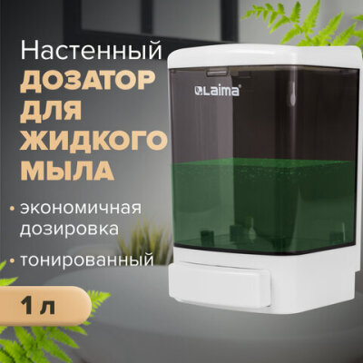 Дозатор для жидкого мыла LAIMA, НАЛИВНОЙ, 1 л, белый (тонированный), ABS-пластик, 603920