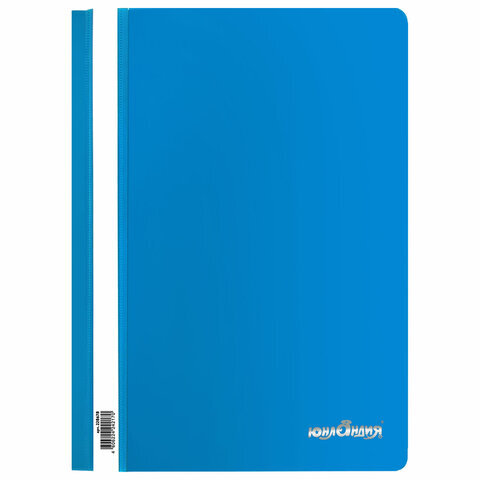 Скоросшиватель пластиковый ЮНЛАНДИЯ, А4, 130/180 мкм, голубой, 228678