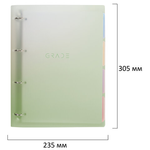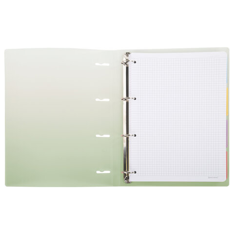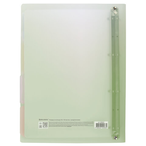 Тетрадь на кольцах БОЛЬШАЯ 305х235 мм А4, 120 л., пластик, с разделителями, BRAUBERG, Зеленый, 404625