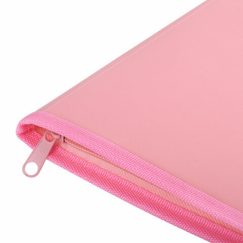 Папка объемная на молнии пластиковая BRAUBERG PASTEL, А4, 330х240 мм, 600 мкм, цвет персиковый, 271972