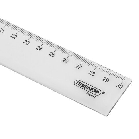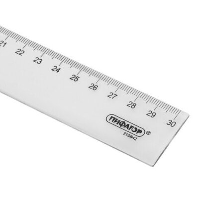 Линейка пластиковая 30 см, ПИФАГОР, прозрачная, бесцветная, 210842