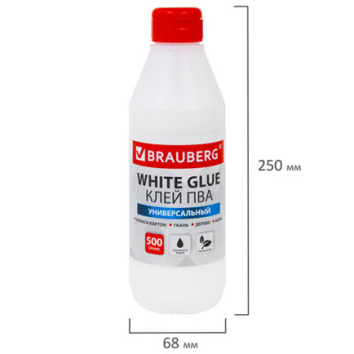 Клей ПВА BRAUBERG, 0,5 кг, универсальный (бумага, картон, дерево), 600982