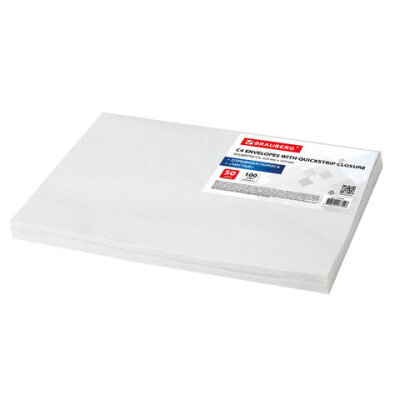 Конверты С4 (229х324 мм), отрывная лента, 100 г/м2, КОМПЛЕКТ 50 шт., BRAUBERG, 112184