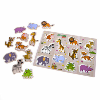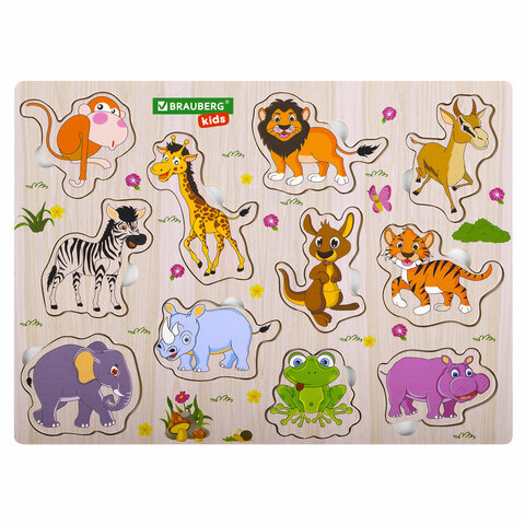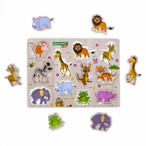 Рамка-вкладыш деревянная развивающая "Животные", 22х30 см, BRAUBERG KIDS, 665256