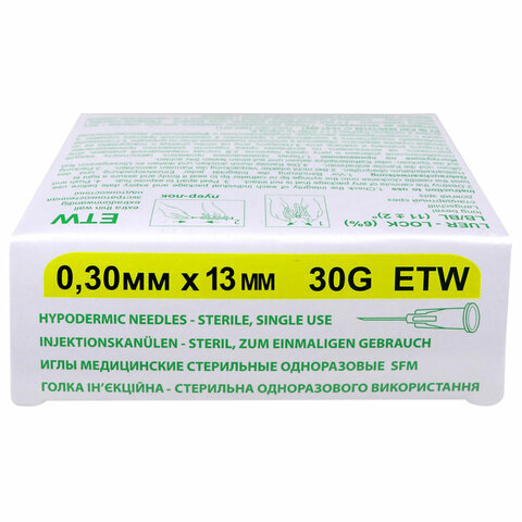 Иглы для мезотерапии и микроинъекций одноразовые SFM 0,30 х 13 - 30G, КОМПЛЕКТ 50 шт.