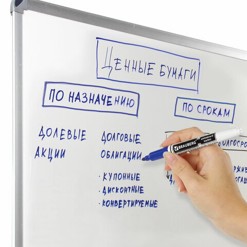 Высококачественный маркер BRAUBERG для белой доски. Предназначен для письма на досках с магнитно-маркерной поверхностью.