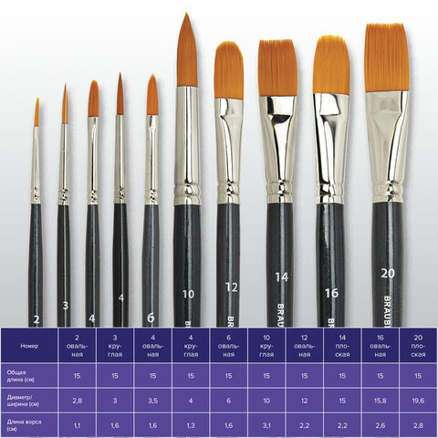 Кисти художественные набор 10 шт., синтетика BRAUBERG ART CLASSIC, 200961