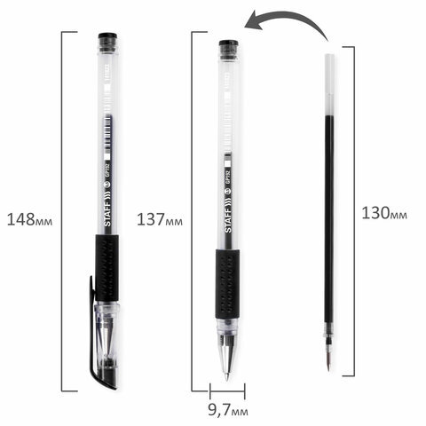 • Гелевая ручка STAFF "EVERYDAY" с колпачком - это эконом-вариант достойного качества для повседневного использования.