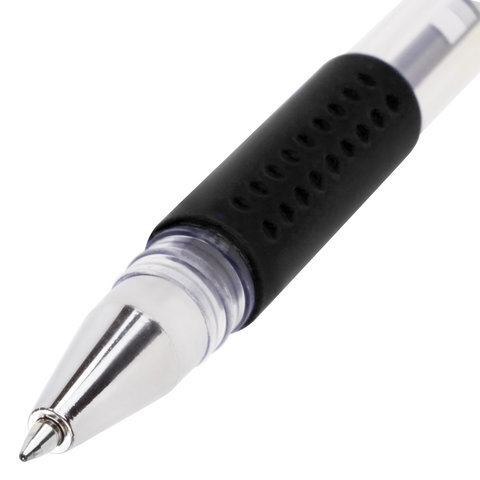 Ручка гелевая с грипом STAFF "EVERYDAY" GP-192, ЧЕРНАЯ, корпус прозрачный, узел 0,5 мм, линия письма 0,35 мм, 141823