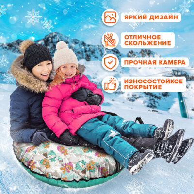 Тюбинг-ватрушка "Забавные медвежата" предназначен для катания взрослых и детей от 12 лет. Усиленное дно тюбинга-ватрушки выполнено из автотента для отличного скольжения, а верх выполнен из прочной, водонепроницаемой ткани оксфорд, имеющей яркий цвет.