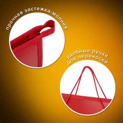 Папка ПИФАГОР предназначена для хранения чертежей, рисунков и других художественных изображений формата А3. Выполнена из пластика, по краям имеет тканевую окантовку. Одно отделение. Застежка-молния расположена по верхнему краю папки.