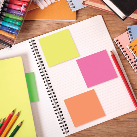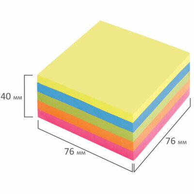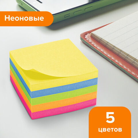 Блок самоклеящийся (стикеры), BRAUBERG, НЕОНОВЫЙ, 76х76 мм, 400 листов, 5 цветов, 122855