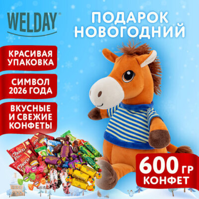 Подарок новогодний СМЕЛЬЧАК РОБЕРТ "Мягкая игрушка-символ 2026 года", НАБОР конфет 600 г, WELDAY (ВЭЛДЭЙ)