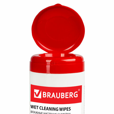 Салфетки для пластиковых поверхностей BRAUBERG, туба 100 шт., влажные, 510123