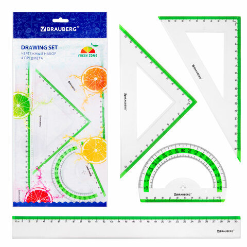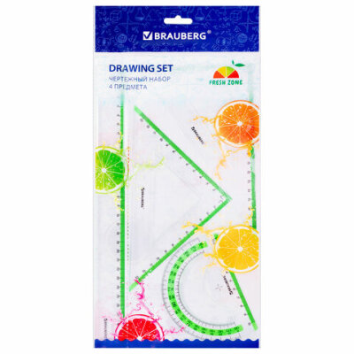 | Комплектация | большой треугольник, линейка, малый треугольник, транспортир |