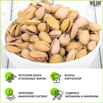 Орехи и сухофрукты являются богатым источником энергии для нашего организма, содержат много полезных питательных веществ и витаминов. Жареные соленые фисташки WELDAY можно использовать как полезный и вкусный перекус в течение рабочего дня.