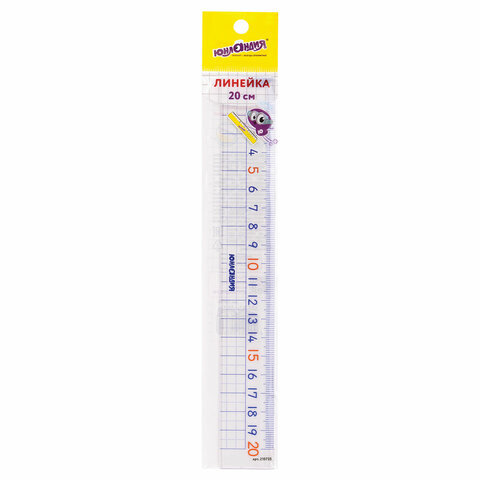 Линейка пластиковая 20 см, ЮНЛАНДИЯ "ШКОЛЬНАЯ", прозрачная, европодвес, 210735