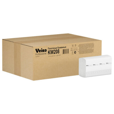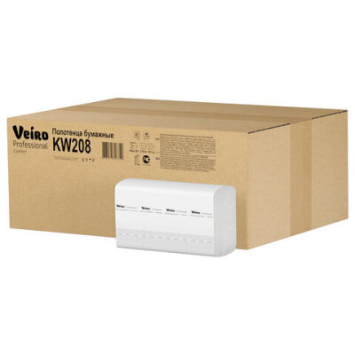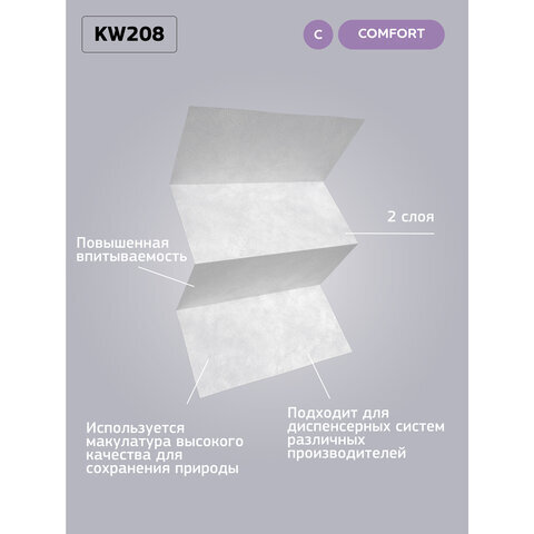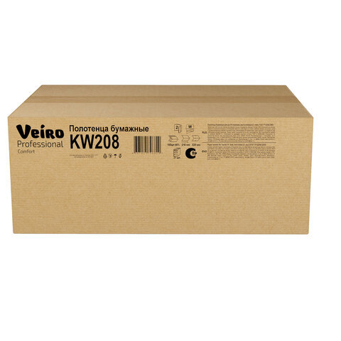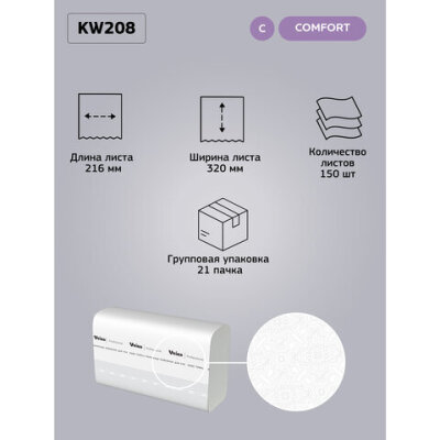 Полотенца бумажные 150 шт., VEIRO (Система H2) COMFORT, 2-слойные, белые, КОМПЛЕКТ 21 пачка, 32х21,6, W-сложение, KW208