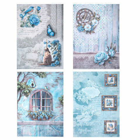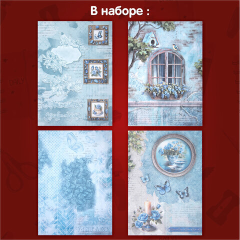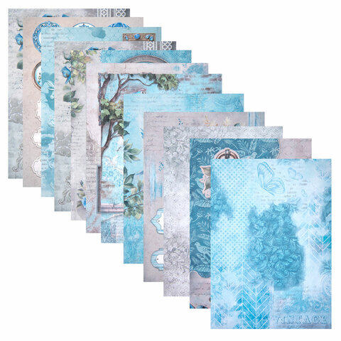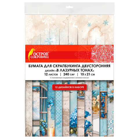 Бумага для скрапбукинга 15х21 см "В лазурных тонах", двусторонняя, 12 листов, 240 г/м2, ОСТРОВ СОКРОВИЩ, 665442