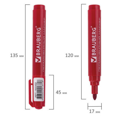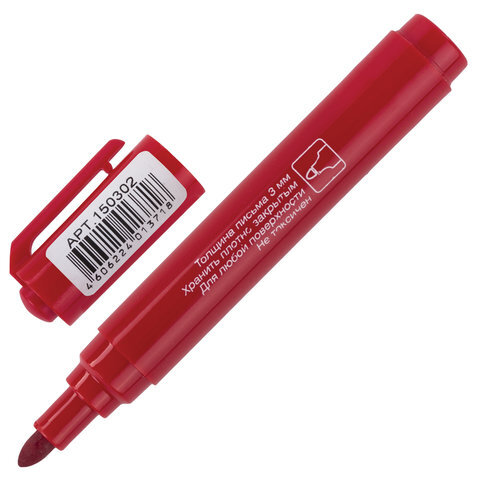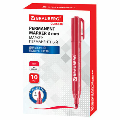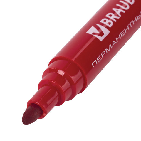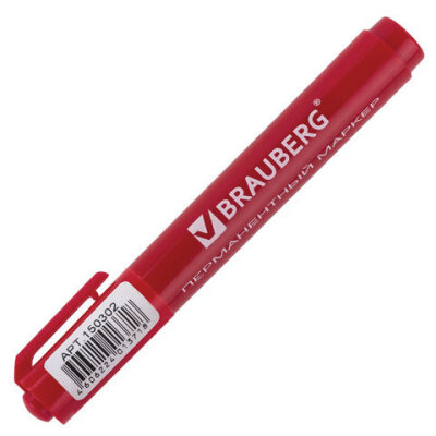 Маркер перманентный BRAUBERG "Classic", КРАСНЫЙ, круглый наконечник, 3 мм, с клипом,150302