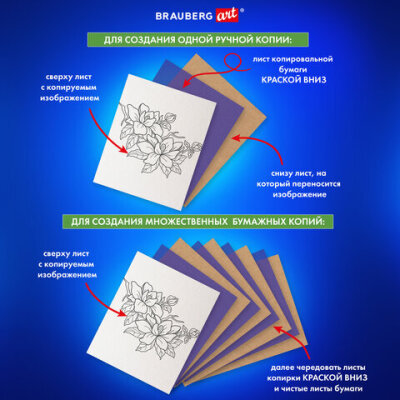 Бумага копировальная (копирка) синяя А4, 50 листов, BRAUBERG ART "CLASSIC", 112402