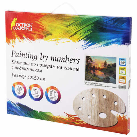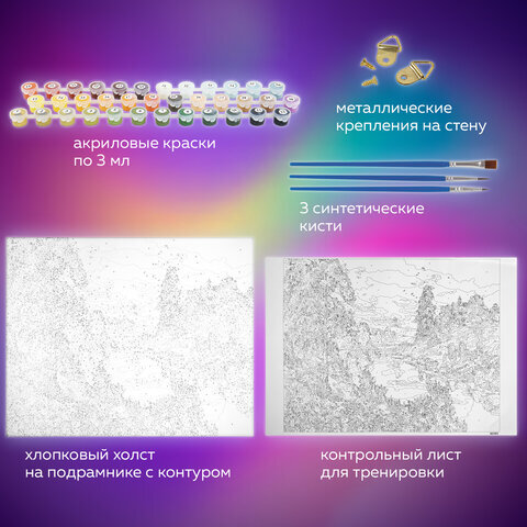 | Комплектация | акриловые краски, кисть, крепеж, лист бумаги для тренировки, холст на подрамнике |