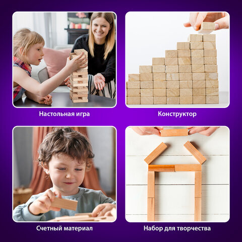 Игра настольная "БАШНЯ", 54 деревянных блока, BRAUBERG HOBBY, 665492