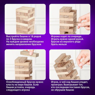 Настольная игра BRAUBERG HOBBY "Башня" – хороший способ весело и интересно провести время в кругу семьи или друзей. Подходит как для семейных вечеров, так и для больших и шумных компаний.
