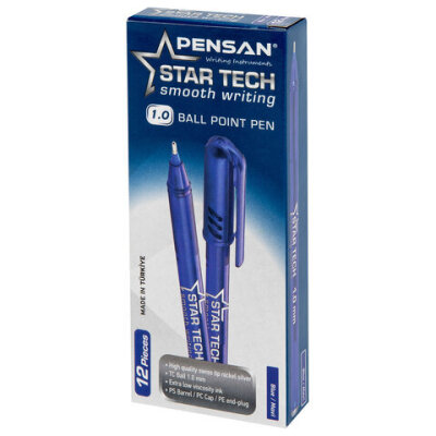 Ручка шариковая масляная PENSAN Star Tech, СИНЯЯ, игольчатый узел 1 мм, линия 0,8 мм, 2260/12