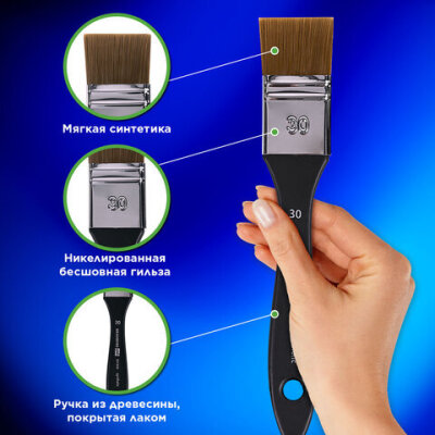 Кисть художественная профессиональная, синтетика, флейц, № 30, BRAUBERG ART CLASSIC, 201035