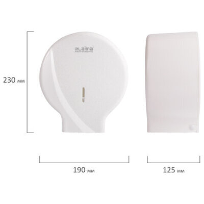 • Диспенсер для туалетной бумаги LAIMA PROFESSIONAL ORIGINAL оптимально подходит для мест с высокой и средней проходимостью. Отвечает всем требованиям гигиены.