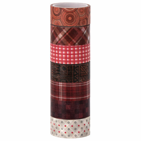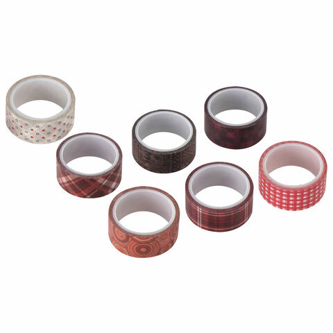 Клейкие WASHI-ленты для декора ОТТЕНКИ КРАСНОГО, 15 мм х 3 м, 7 цветов, рисовая бумага, ОСТРОВ СОКРОВИЩ, 661705
