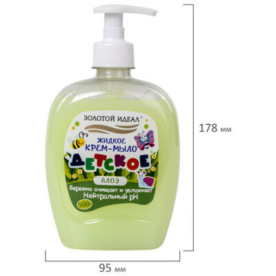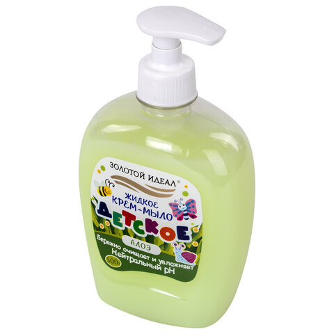 Мыло-крем жидкое ДЕТСКОЕ 500 г, ЗОЛОТОЙ ИДЕАЛ, Алоэ, дозатор, 605518
