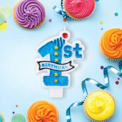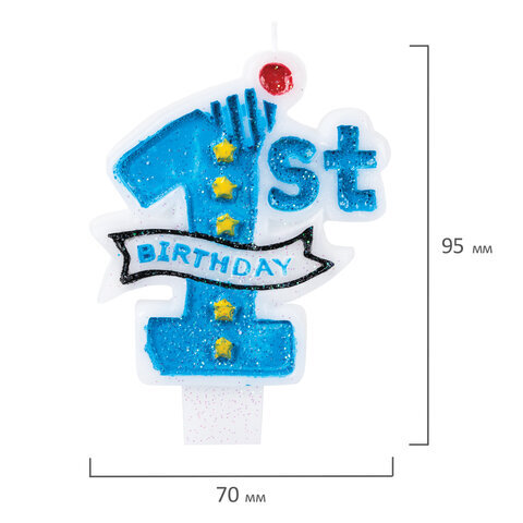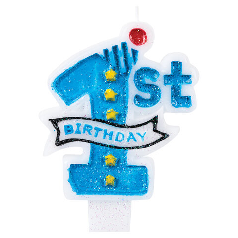 Свеча-цифра для торта "1 годик", голубая, 9,5 см, ЗОЛОТАЯ СКАЗКА, в блистере, 591443